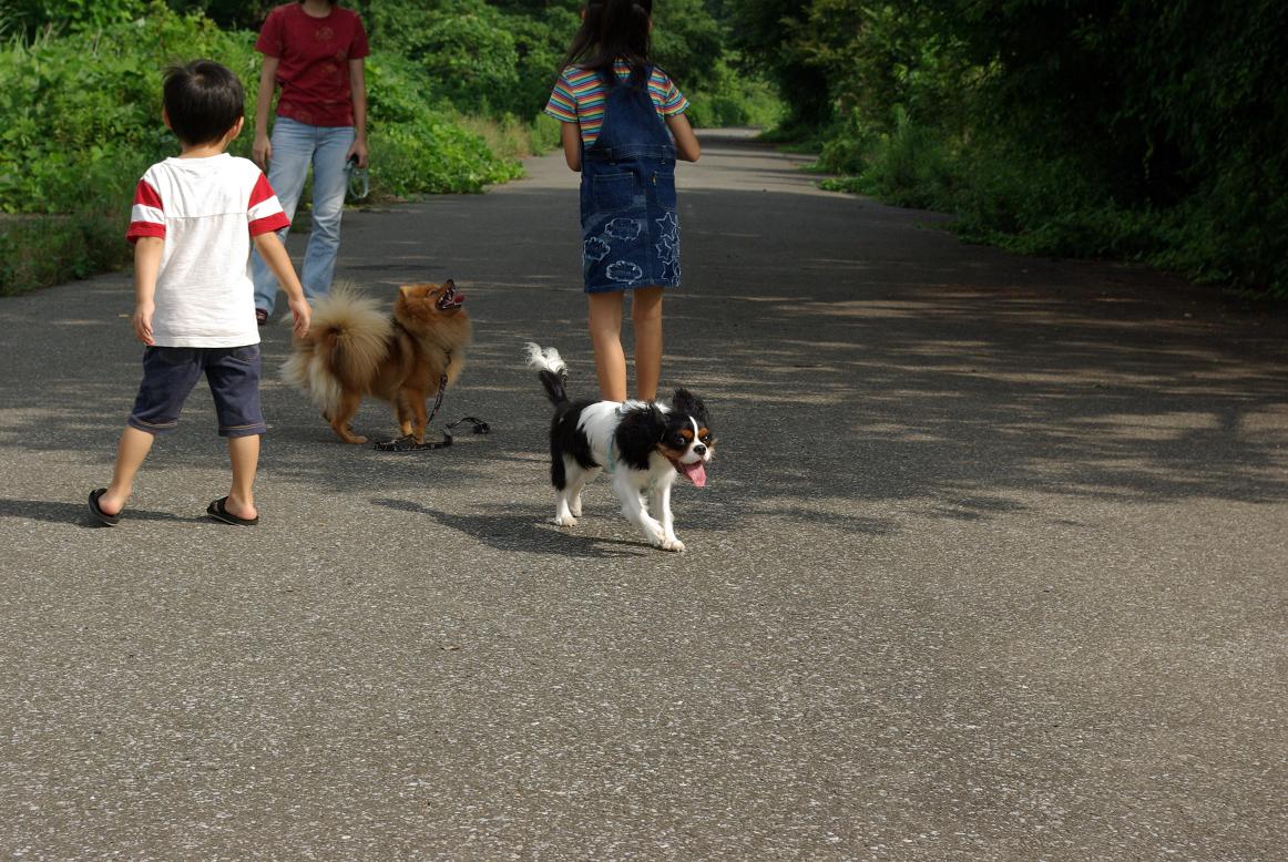 モモさんとお隣のナナさんを連れてお散歩。