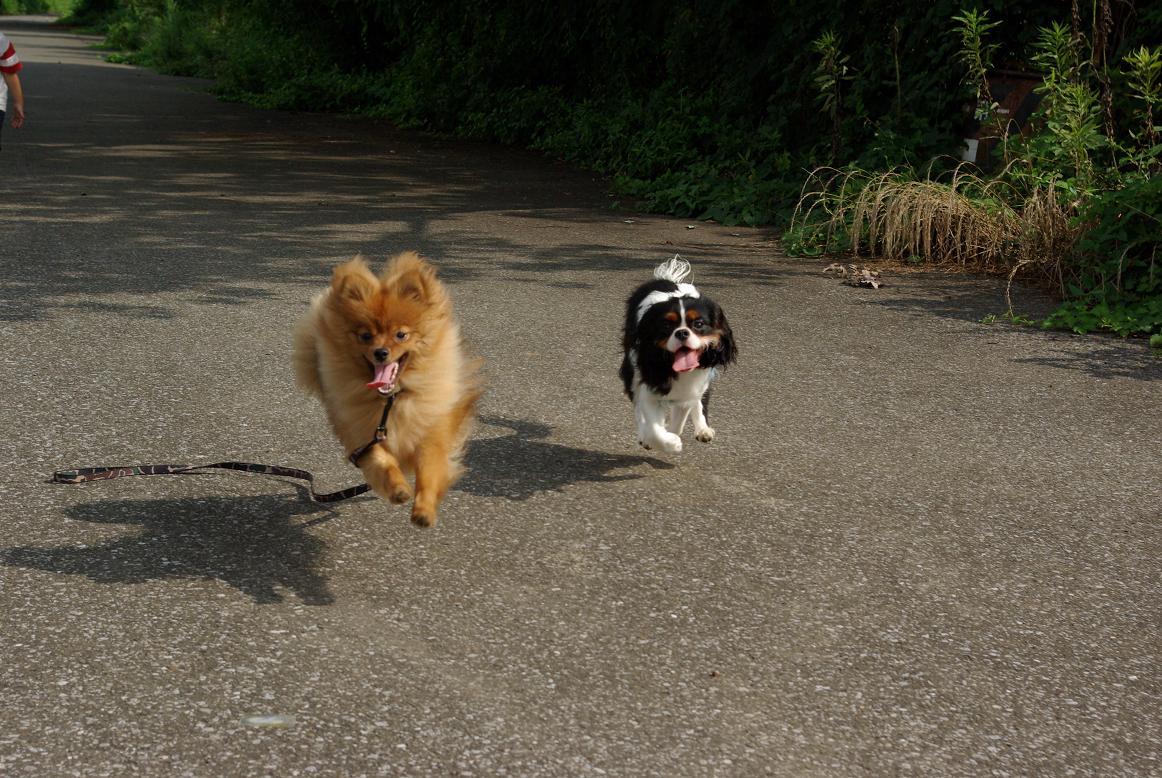 人もいないので、2匹の綱を放して、さあ!遊ぶがよいっ!!