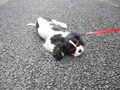 たっぷり水族館を堪能して外でアイスクリームを食べていると、キャバリアを連れたカップルを発見。トライカラーとルビーの2匹を連れてきてました。